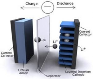 Finally, one anode, cathode and separator are finally assembled a liquid electrolyte is added to the cells The electrolyte acts as the medium which allows the lithium-ions to move from anode (negative) to cathode (positive) during discharge, and then back again during charge